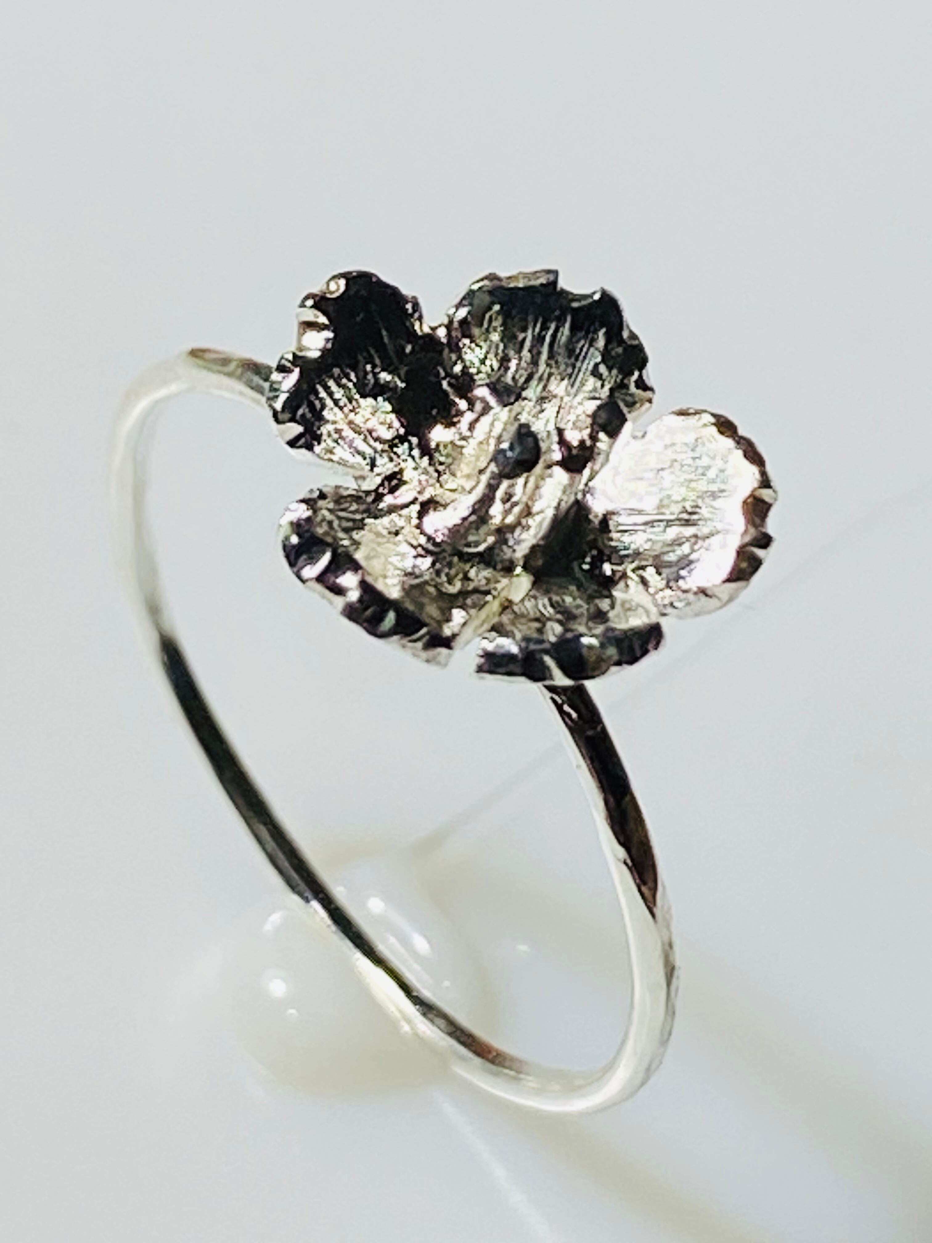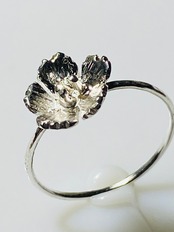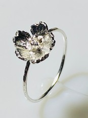 シルバー1.5㍉板を鍛金、桜を切り出ししました。華奢な1㍉線リングです,桜部分は直径約10㍉です。